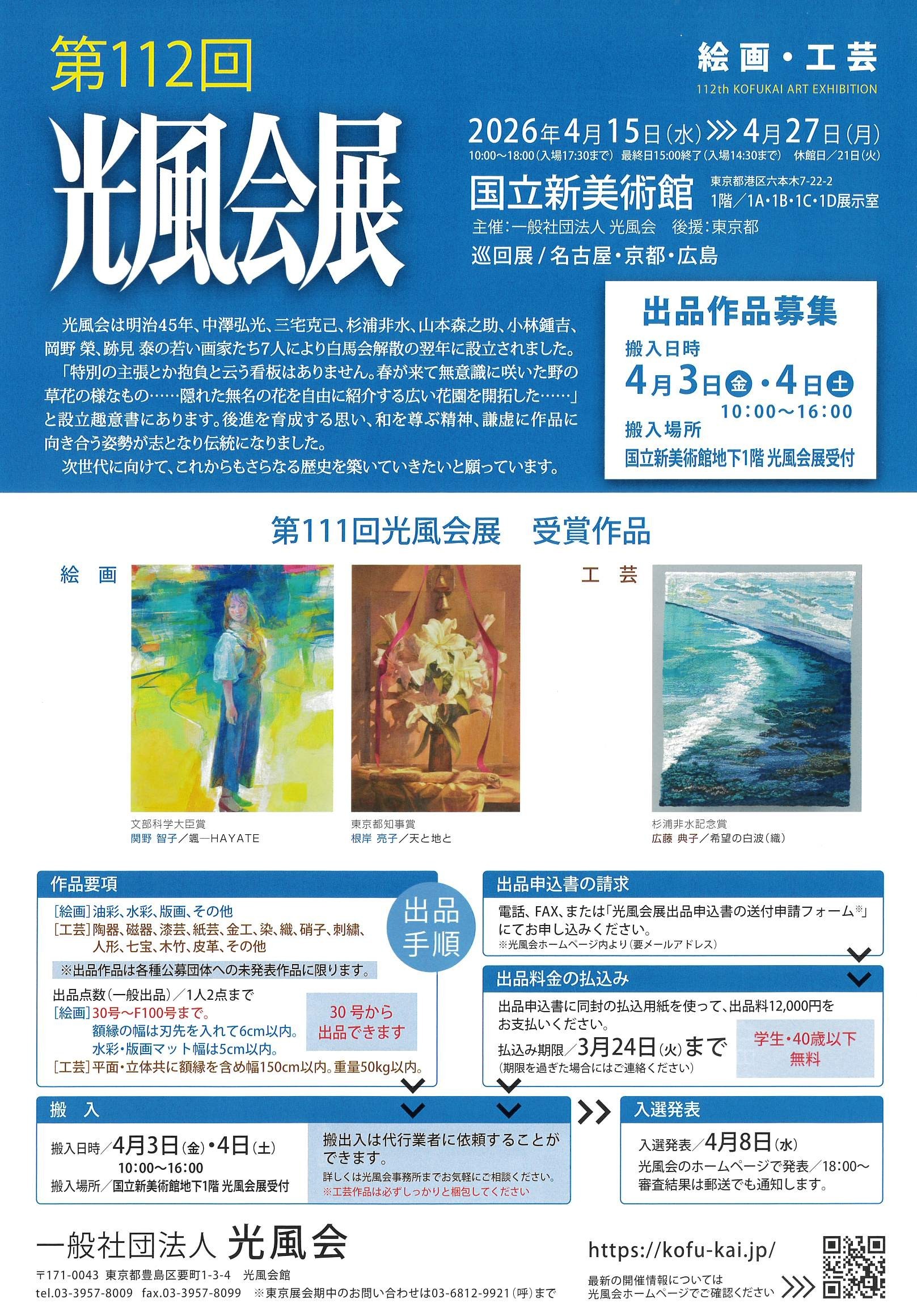 第112回光風会展の出品要項をアップしました。詳細は上の「第112回光風会展出品要項」をクリックしてご覧ください。